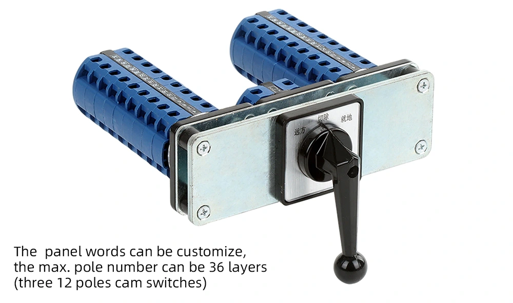 A YAMING LW26 20A kettős kötésű forgóbütykös kapcsoló egy csúcskategóriás elektromos vezérlő termék, amelyet a Zhejiang YAMING Electric Co., Ltd. (YAMING) függetlenül fejlesztett ki, és kínai nemzeti szabadalomért folyamodott. Ennek a terméknek a névleges paraméterei AC 50Hz/maximum 690V és DC maximum 240V (20A), megbízható áramköri kapcsolási és átalakítási funkciókkal rendelkezik, amelyek különféle elektromos vezérlési forgatókönyvekhez alkalmasak.