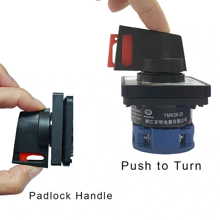 Több mint 30 éves tapasztalattal rendelkező professzionális elektromos kapcsológyártóként a YAMING piacra dobja a 20A-es lakatnyomó-vezérlő forgóbütykös kapcsolót (belső modell: YMW26-20NS), amely a több évtizedes gyártási tapasztalatot és a technológiai innovációt integráló remekmű. Ezt a terméket a biztonsági ellenőrzés fokozására és a helytelen működés megelőzésére tervezték, alkalmas AC 50Hz, max 690V és DC 240V áramkörökhöz, 20A névleges áramerősségig.