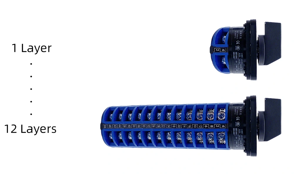És ez a 32A-es forgó bütykös kapcsoló testreszabható (1 és 12 réteg között):
