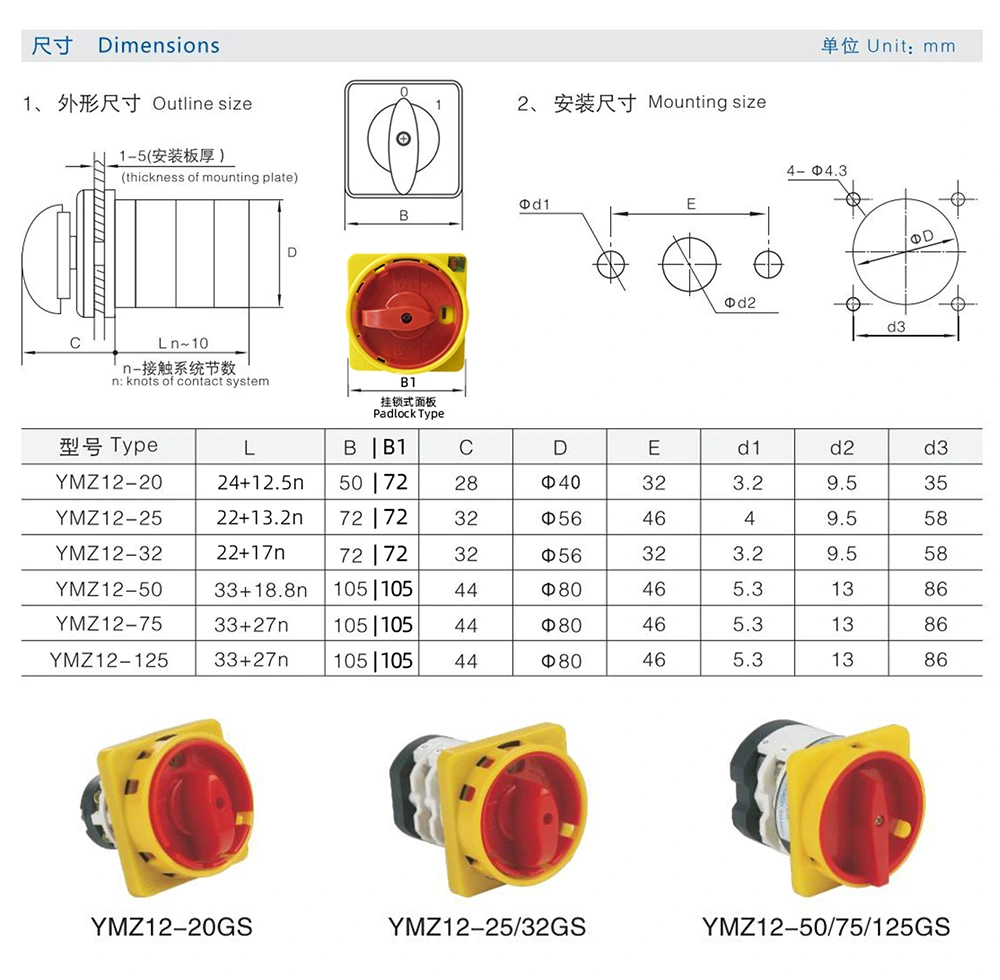 Több mint 30 éves szakmai tapasztalatával a Zhejiang Yaming Electric a kiváló minőségű elektromos kapcsolók vezető szállítója. Kihasználva az erős műszaki erőt és az átfogó minőségirányítási rendszert, örömmel mutatjuk be az 50A lakat OFF-ON kétállású kombinált forgóbütykös kapcsolónkat (belső kód: YMZ12-50GS). Kiváló kivitelezéssel és fejlett technológiával rendelkezik, hibás működés elleni funkciókkal rendelkezik, amelyek stabil és hatékony áramkör-vezérlést biztosítanak a globális ipari felhasználók számára.