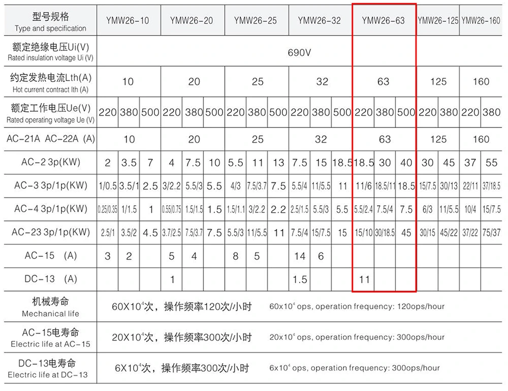 A YAMING 63A lakat OFF-ON leválasztó kapcsoló kiváló környezeti alkalmazkodóképességgel rendelkezik, és normál munkakörülmények között is stabilan működik. A konkrét műszaki paraméterek a következők: