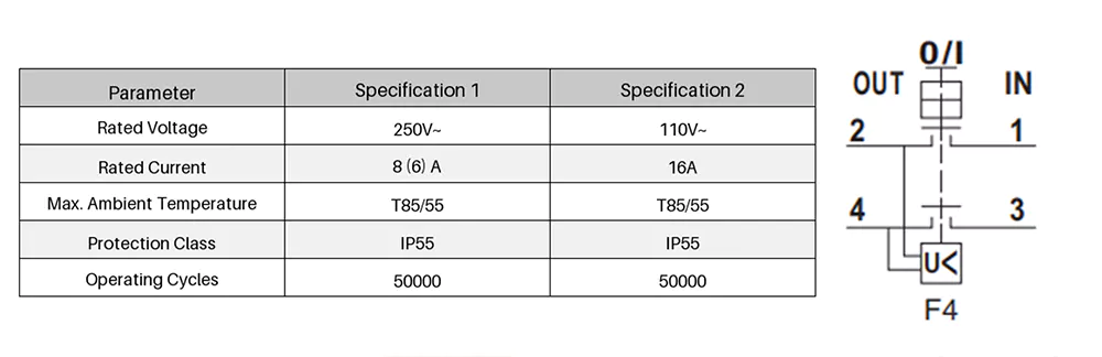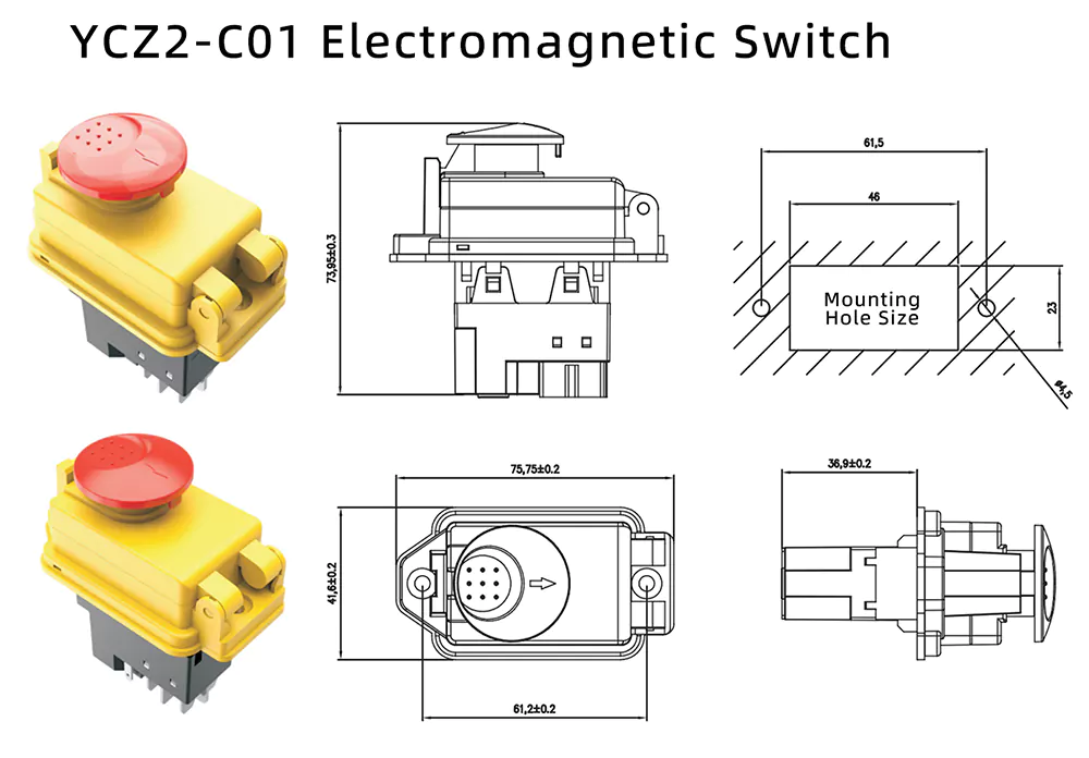 Hővédelmi kapcsolóval kombinálva ez az egység átfogó védelmi megoldást kínál alacsony feszültség elleni védelemmel, túlterhelés elleni védelemmel és megbízható üzembiztonsággal. A 8A kisméretű vészleállító fedél nyomógombos elektromágneses kapcsolója kiválóan alkalmas kis váltóáramú motorvezérlésre és rezisztív terheléskapcsolásra.